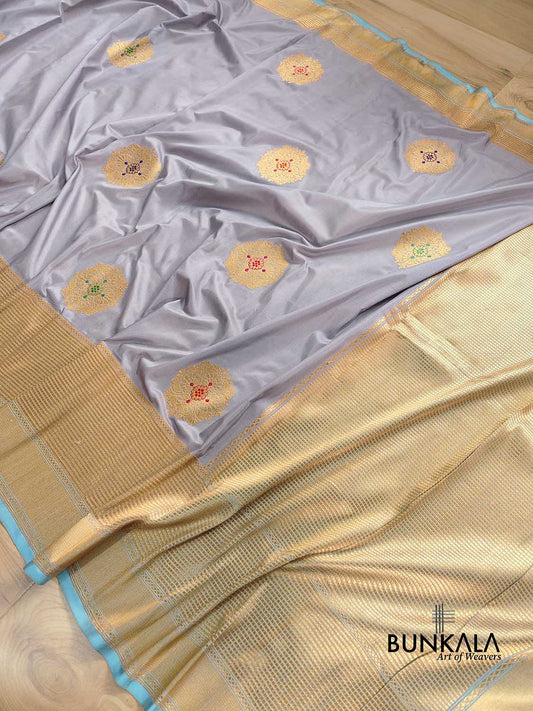 Grey Antique Zari Big Allover Meenakari Kadwa Handweaved Buta Pure Katan Silk Banarasi Saree