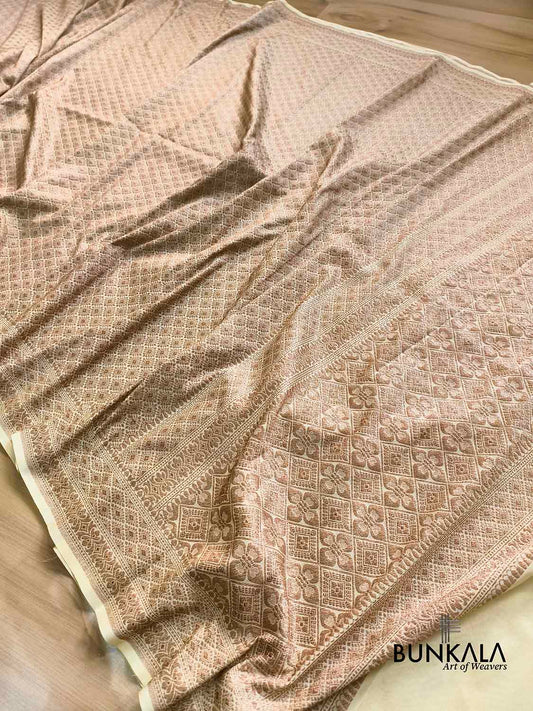 Pastel Yellow Brocade Antique Zari Weaved Banarasi Resham Silk Saree