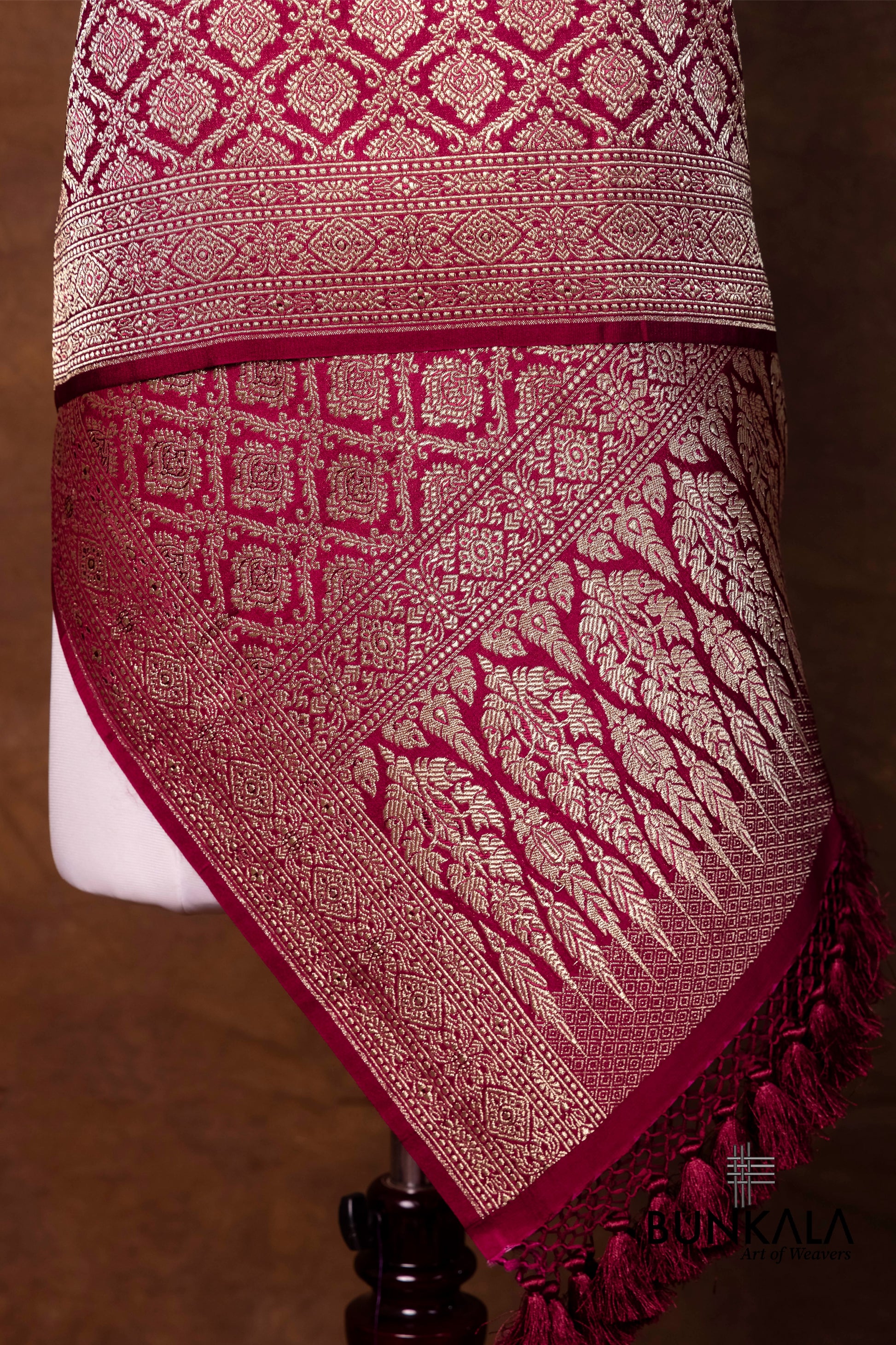 Burgundy Maroon Mashru Silk Brocade Weaved Banarasi Dupatta