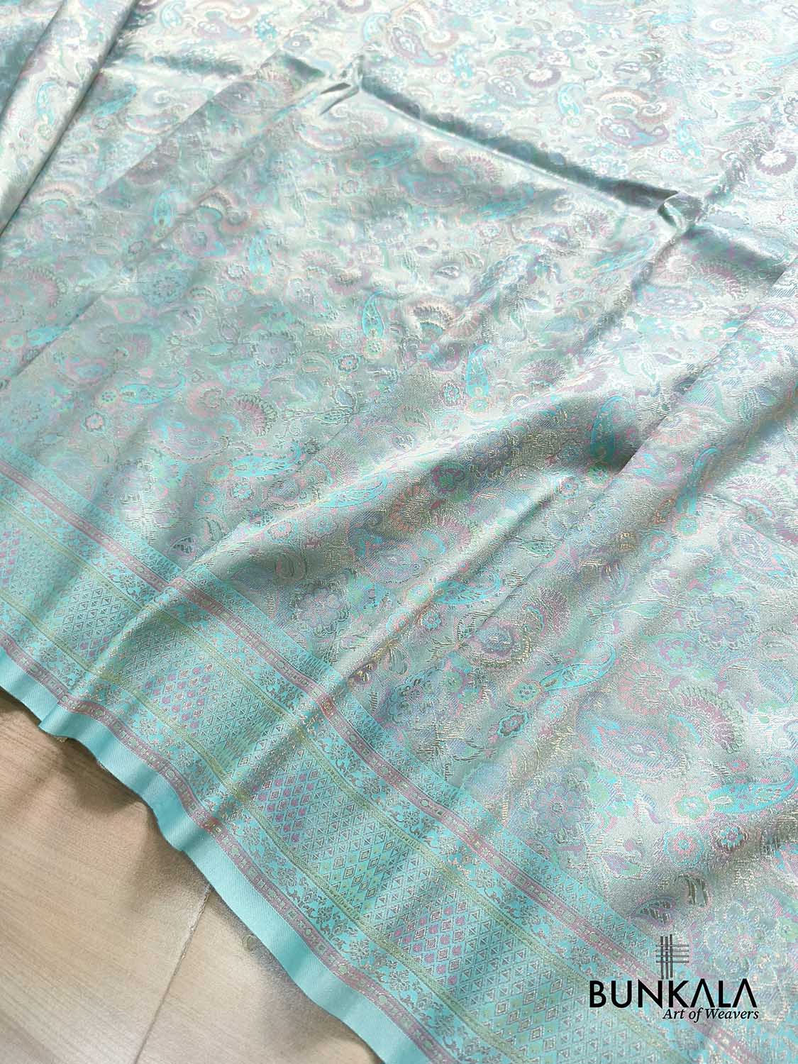Pastel Blue Kimkhab Brocade Meenakari Banarasi Silk Saree