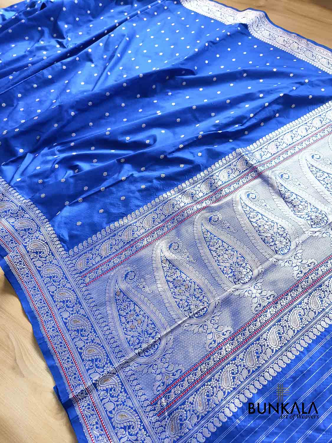 Royal Blue Silver Zari Buti Banarasi Pure Katan Silk Saree